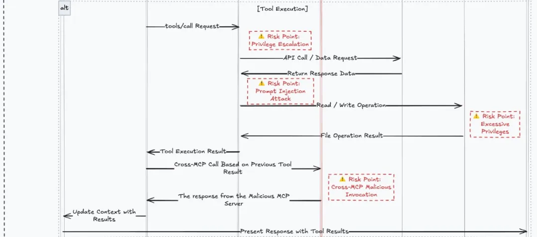 Sequence diagram showing potential cross-MCP attack vectors and risk points. Source: SlowMist