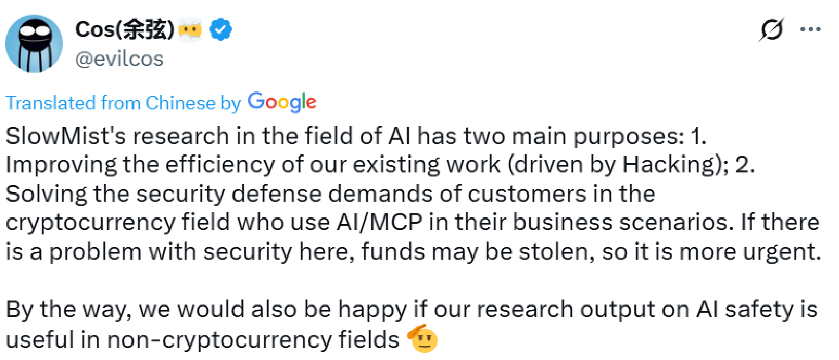 The adoption of MCP and AI agents is still relatively new in crypto. SlowMist identified the attack vectors from pre-released MCP projects it audited, which mitigated actual losses to end-users.