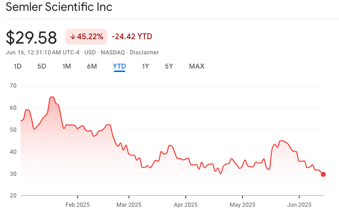 Semler is a medical technology firm that first bought Bitcoin in May 2024 and has grown its holdings to the 13th largest among public firms, with 3,808 BTC worth $404.6 million.