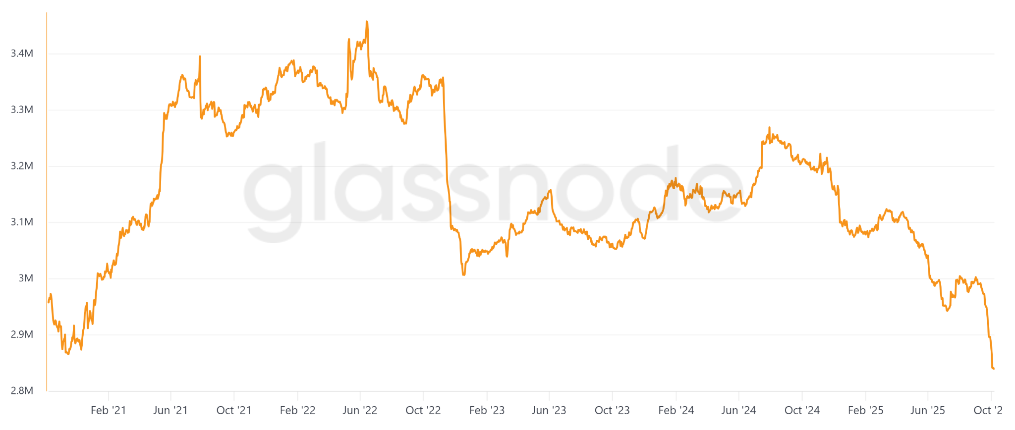 Bitcoin deposits on exchanges have dropped to their lowest levels in over five years, signaling a reduced supply available for immediate sale. Glassnode estimates total exchange balances at 2.38 million BTC, down from 2.99 million one month earlier. Even if large buyers can still access supply through over-the-counter (OTC) desks, the declining balances on exchanges point toward ongoing accumulation.