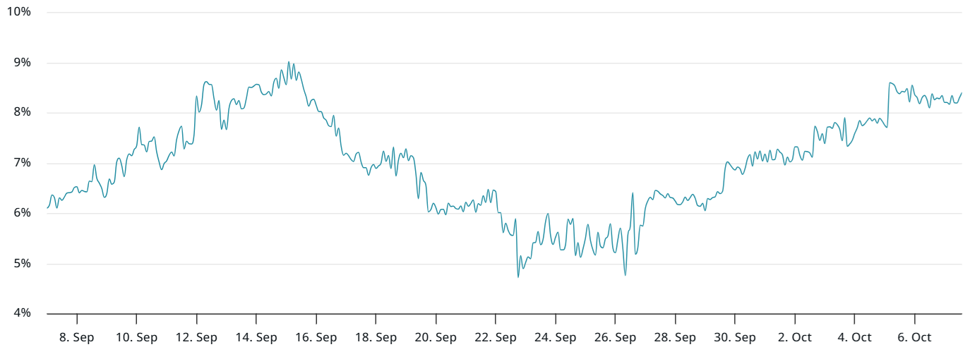 Bitcoin monthly futures are trading at an 8% annualized premium compared to regular spot markets, sitting comfortably within the neutral 5% to 10% range. Periods of excessive confidence often push this spread above 20%, reflecting higher demand for leveraged bullish positions. In contrast, bearish markets usually pull the indicator below 5% or even into negative territory — clearly not the case now.