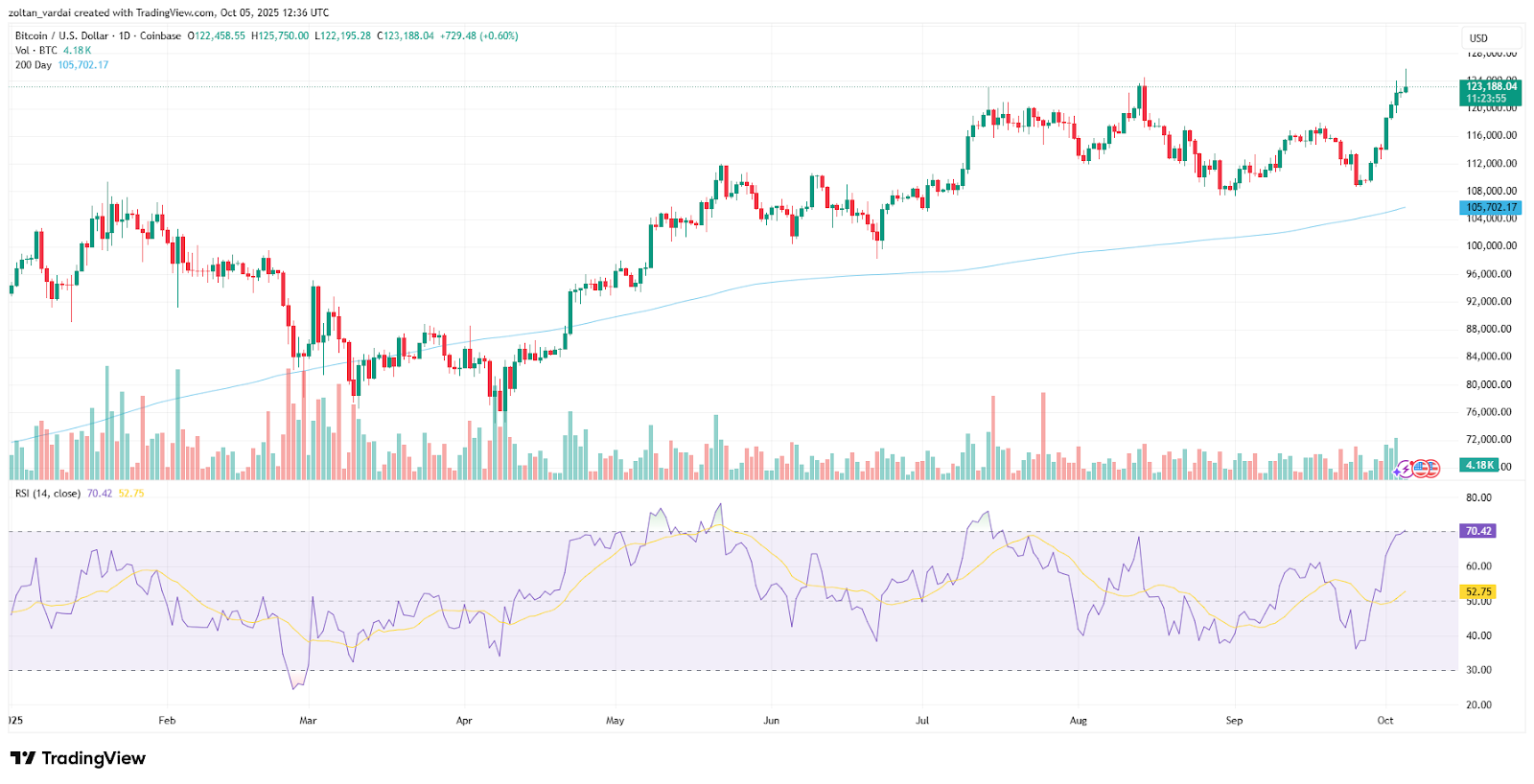 Bitcoin (BTC) set a new all-time high above $125,700, and its market capitalization briefly crossed the $2.5 trillion milestone for the first time in crypto history, Cointelegraph reported earlier on Sunday.