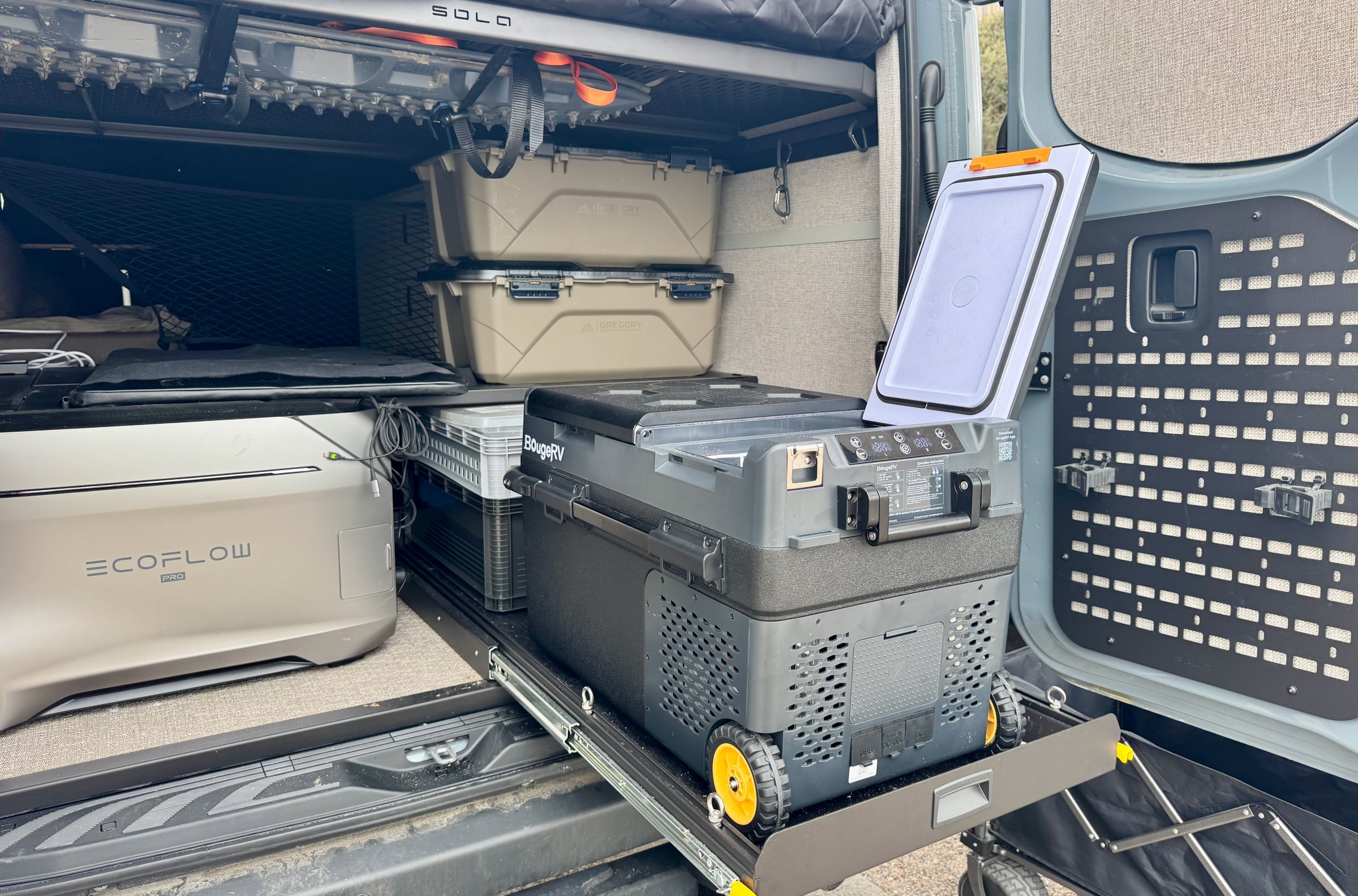 Easily fits on a van’s slider, where it can augment an outdoor kitchen or act as a full-time freezer.