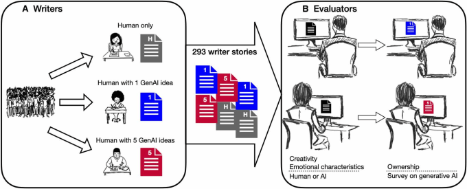 The experiment had hundreds of people write very short stories (eight sentences or so), on any topic but suitable for a broad audience. One group just wrote; a second group was given the opportunity to consult GPT-4 for a single story idea with a few sentences (they could use as much or as little as they liked); a third could get up to five such story starters.