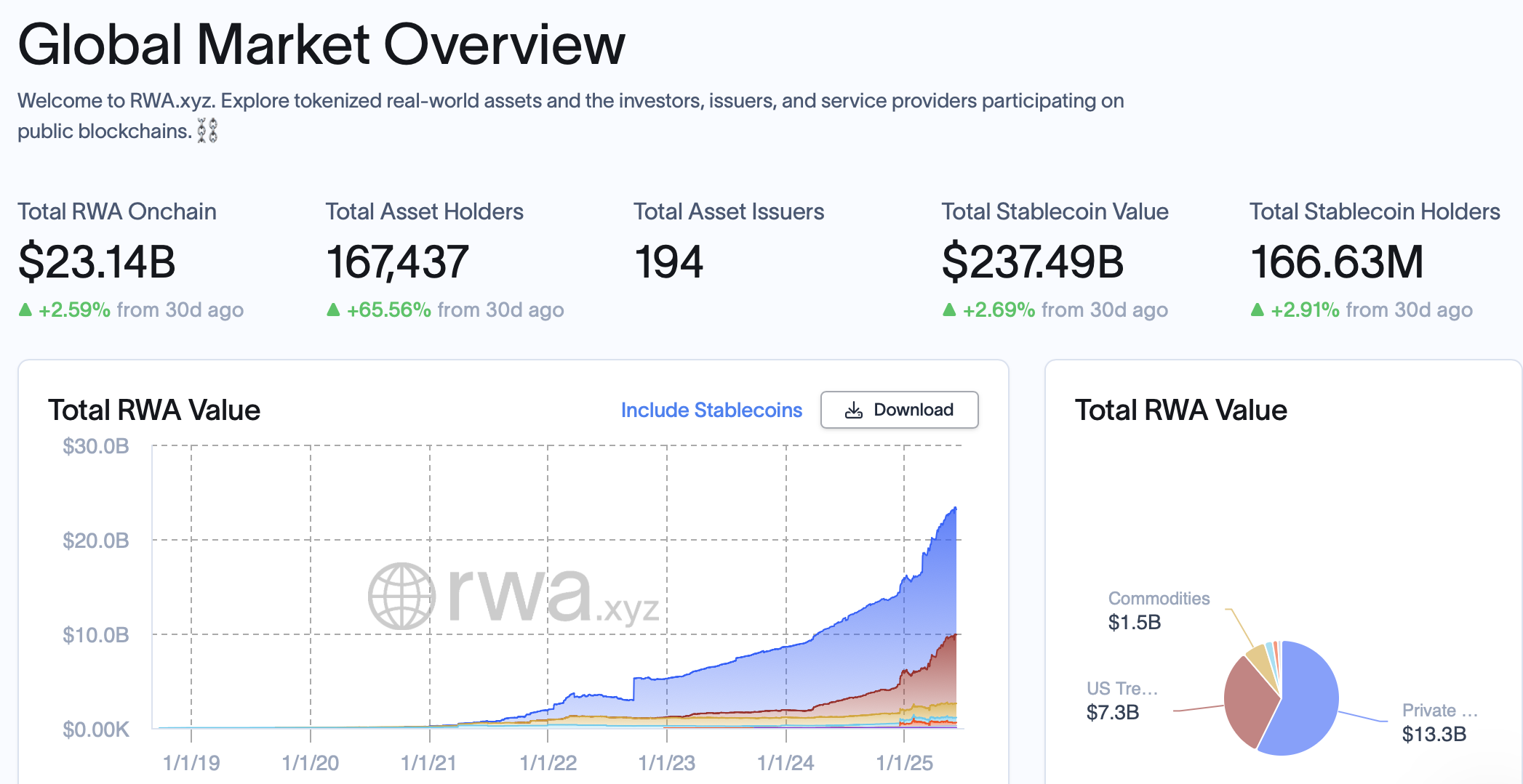 Real-world asset tokenization market statistics. Source: RWA.xyz