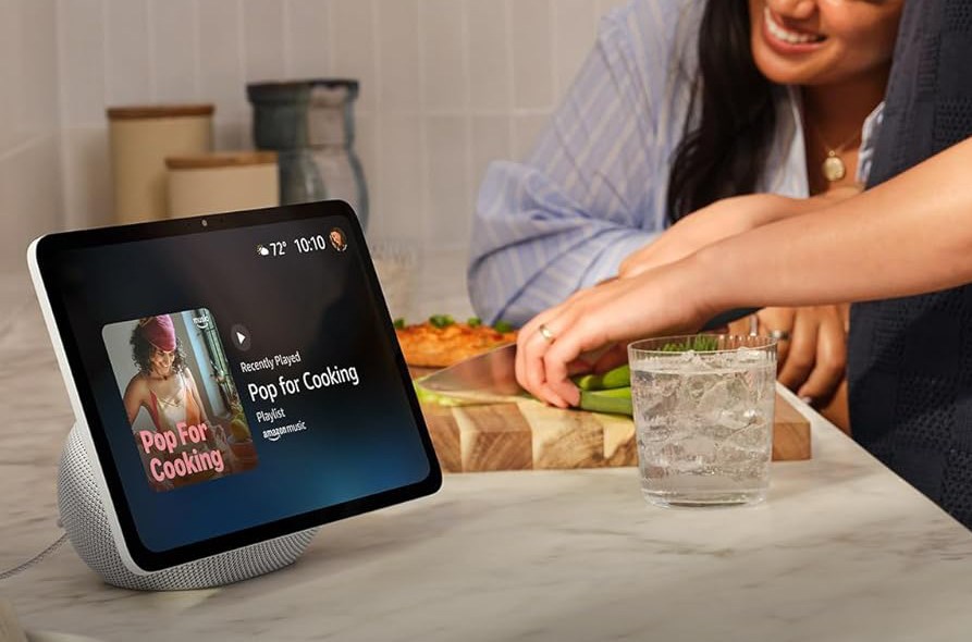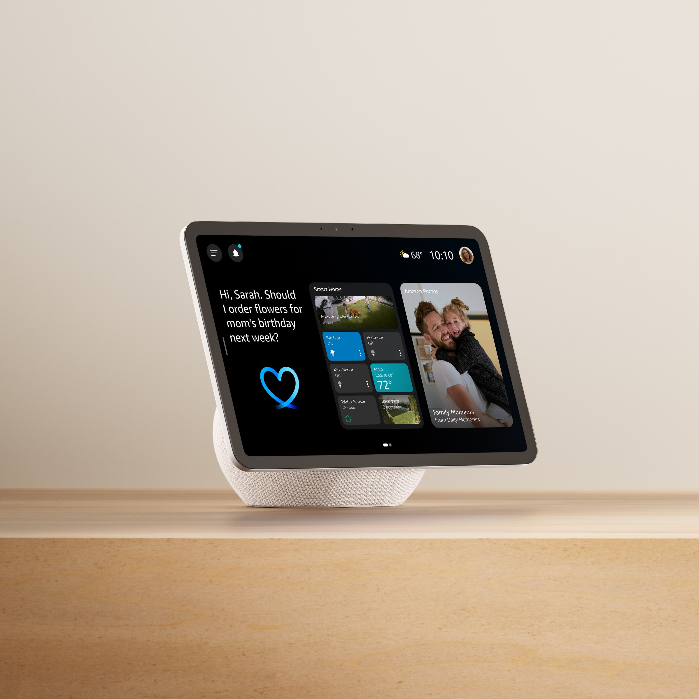 Both smart displays feature a more refined design with 3D knit fabric, slimmer bezels, and vivid color. They come with a 13-megapixel camera that can adjust screen content based on who is looking at it and your location, along with an expanded display area and new front-facing stereo speakers. Both speakers also support Alexa Plus and can serve as built-in smart home hubs with support for Zigbee, Matter, and Thread. In addition, they’ll provide personalized health insights through Amazon’s new partnership with Oura, with support for more devices from Withings and Wyze coming soon.