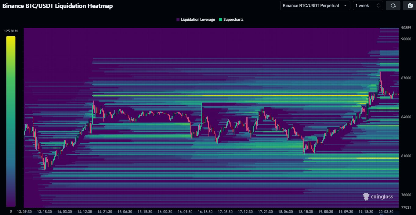 BTC/USDT liquidation heatmap. Source: Daan Crypto Trades/X