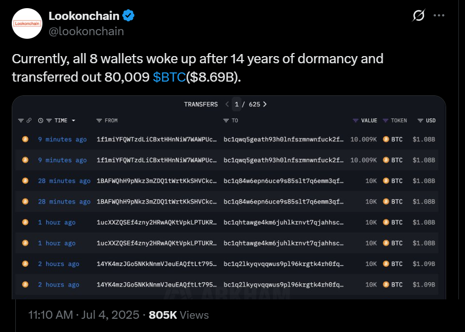 Dormant Bitcoin wallet spooks the market by moving 80,000 BTC
