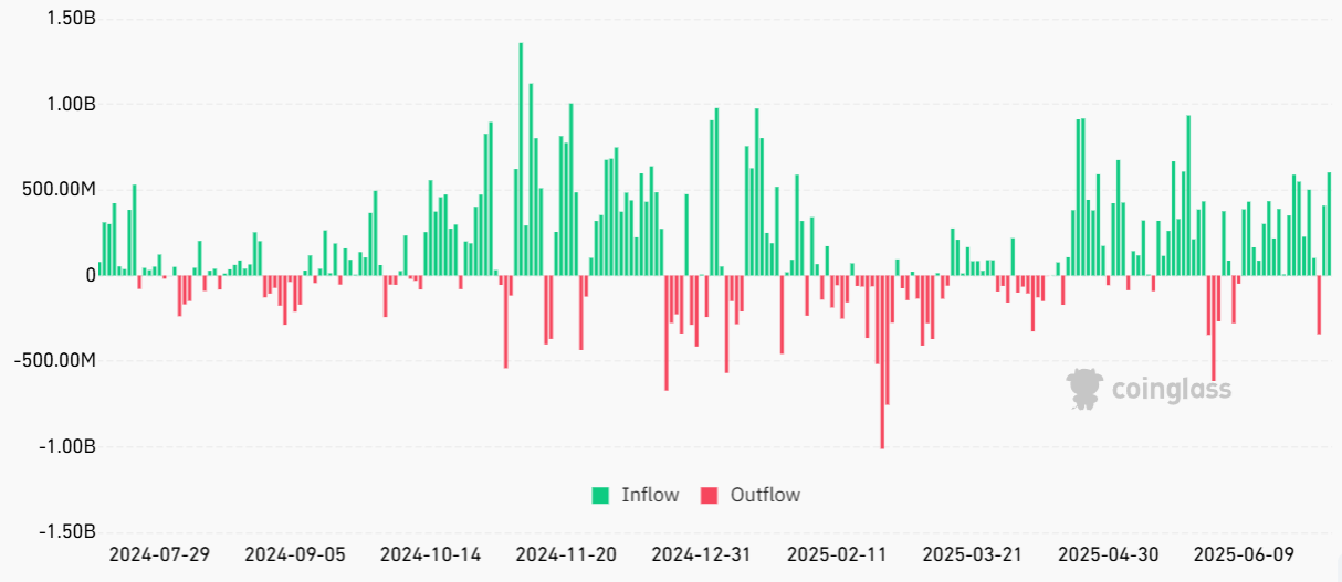 Bitcoin (BTC) traded down to $107,400 on Friday after facing a strong rejection near the $110,500 level on Thursday. The drop coincided with $1 billion in net inflows into spot Bitcoin exchange-traded funds (ETFs) over two days. Traders are now scrambling to justify the 2.8% pullback, despite BTC having hovered around $107,400 for most of the prior week.