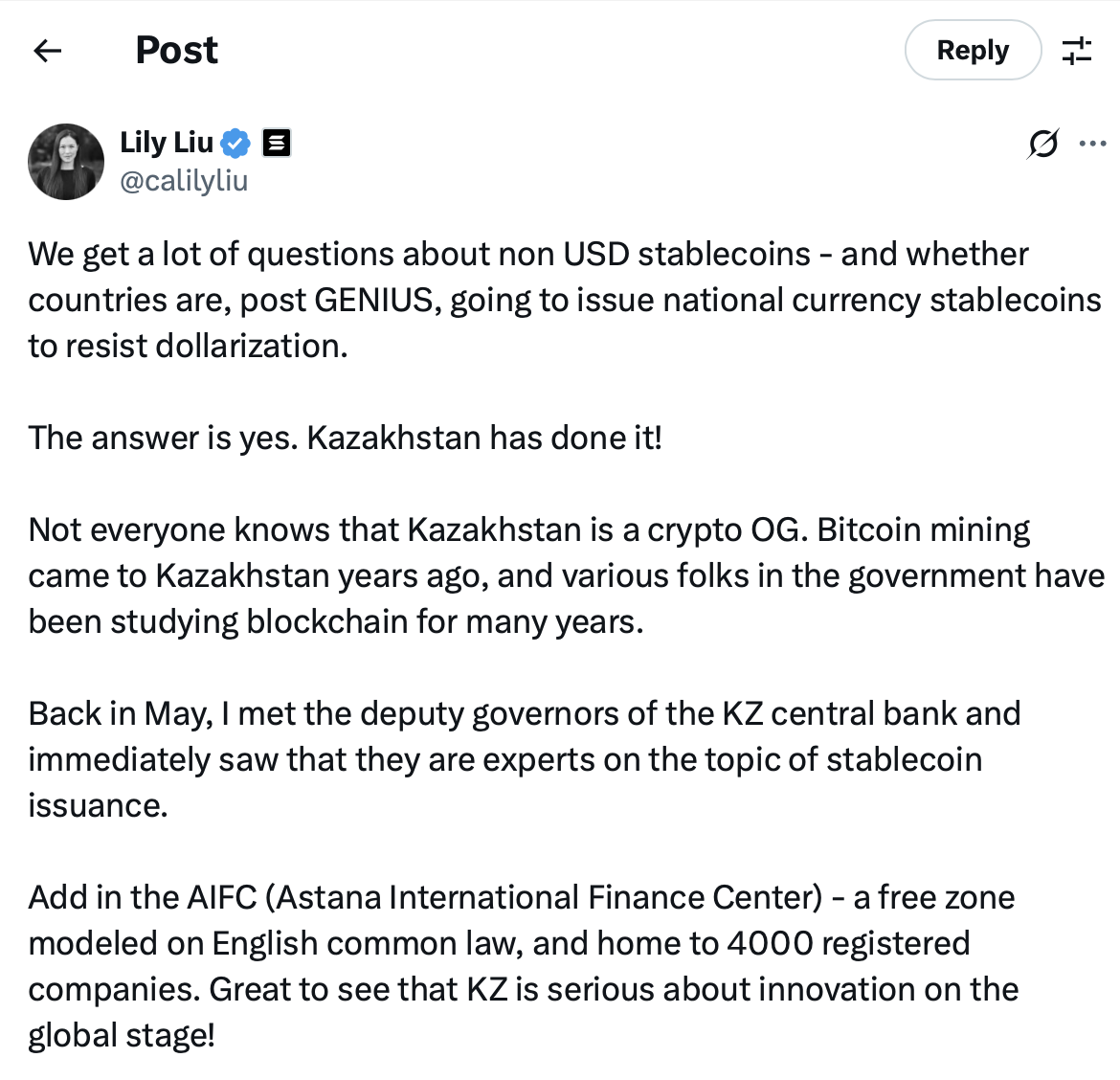 The news was announced less than a week after Kazakhstan rolled out its own tenge-backed stablecoin, KZTE, on the Solana network through a partnership with Mastercard, Intebix, and Eurasian Bank.