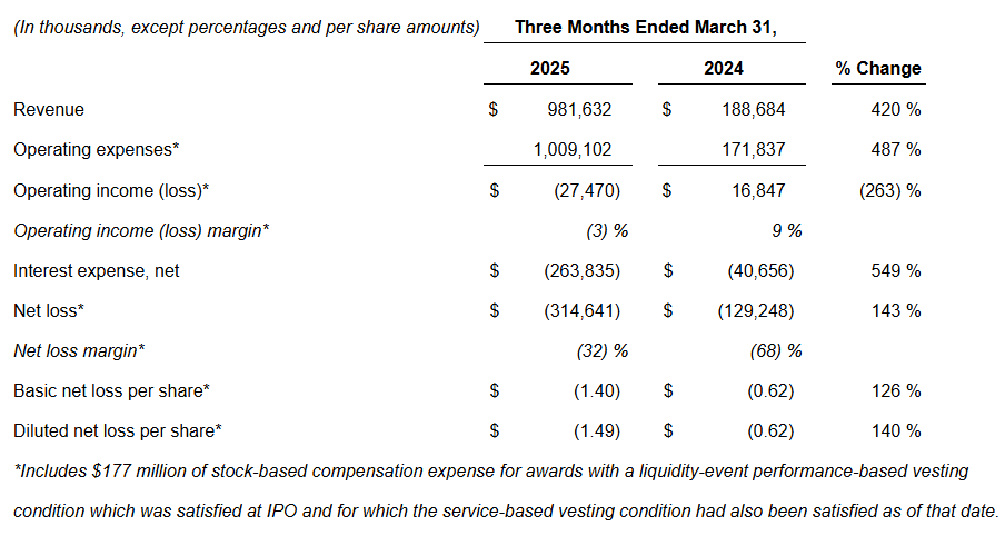 The Nvidia revelations overshadowed CoreWeave’s fiscal first-quarter earnings report, which showed a 420% surge in revenue but also a 487% spike in operating expenses. The company’s net loss widened by 143% compared to a year earlier. Its stock declined shortly after the financials were released on May 14.
