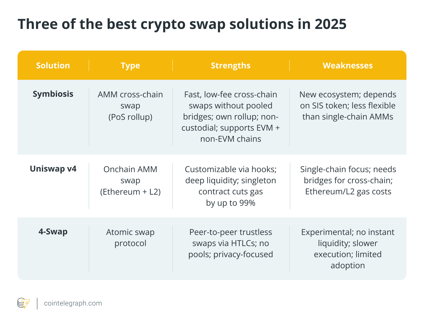 While platforms like Symbiosis have set a high standard for swapping and bridging crypto in 2025, different providers take very different technical paths to achieve the same goal: letting users move assets between blockchains quickly, securely and cost-effectively.