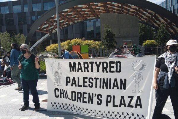 On Tuesday, a group of current and former Microsoft employees, as well as community members, took over a plaza at Microsoft’s headquarters in Redmond, Washington, as part of a No Azure for Apartheid protest. They declared the area a “Liberated Zone” encampment and said they had changed its name from East Campus Plaza to “The…