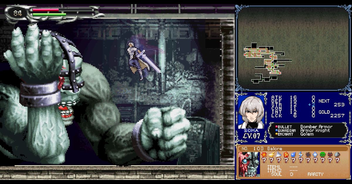 Part of what made Castlevania such a good fit for the DS was how much information could be displayed at once. While the side-scrolling action took place on one screen, the other could show character information or, more crucially, the map. For a game that’s all about traversing a complex castle, with lots of backtracking and blocked entrances to contend with, having that map always on is incredibly helpful. And not only is that option still present in this modern rerelease but Konami has also given players a few choices for how they want their info displayed.