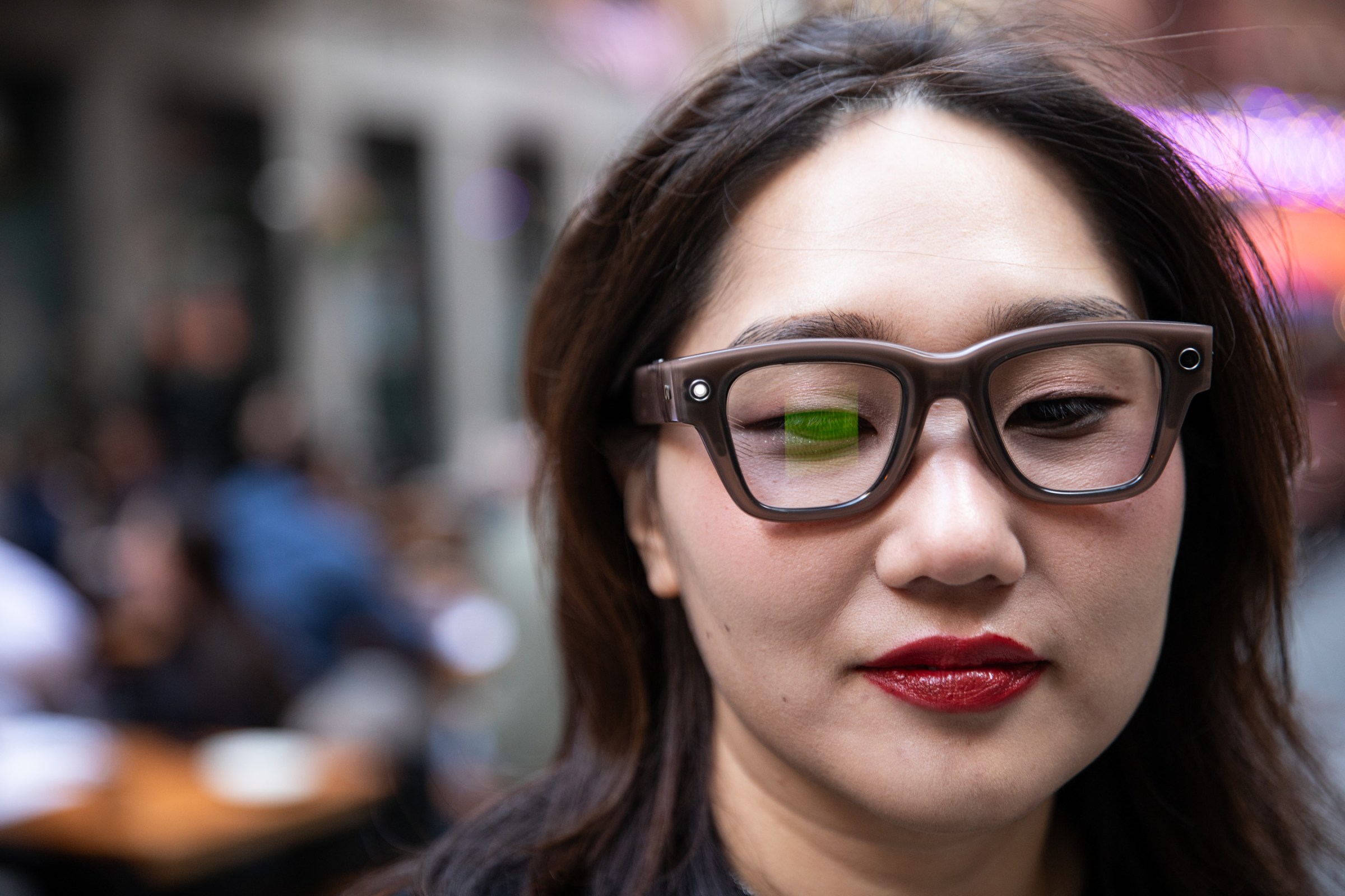 A display opens more doors. One of the big features is live captions, which adds real-time subtitles to your conversations. It was helpful to turn on live captions during a podcast taping. They’re not always perfect — AI transcriptions universally struggle with slang or uncommon names — but they’re nice in one-on-one conversations in a noisy restaurant. The transcriptions are less useful when you’re walking and talking with a friend, though. For it to work well, you have to be looking directly at your conversation partner. That makes it awkward if you’re walking side by side, as you physically have to turn your head to face each speaker. The AI also had a hard time captioning my mumbly spouse. No amount of yelling in a loud bar can help the AI, either.
