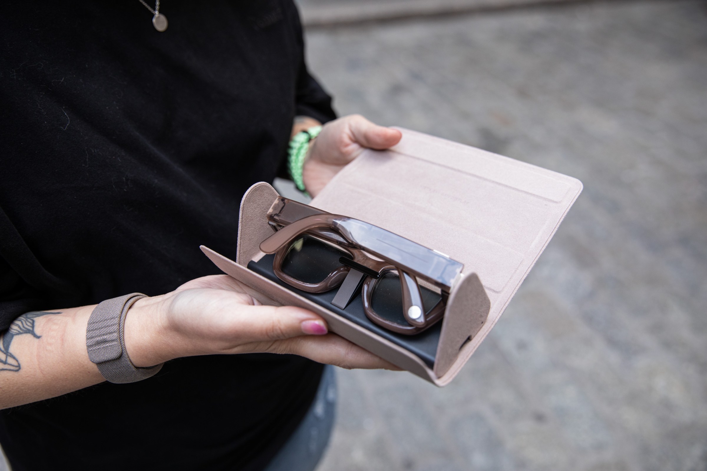 Adding another layer of complexity is the Neural Band. It’s more comfy than the ring-like loop controls I’ve used on other smart glasses, but it takes up a lot of wrist space for a single-function wearable. I didn’t have many problems with it recognizing gestures, except that it occasionally summons Meta AI when I’m typing. Irksome, but the more annoying part was having to keep track of battery levels for both the glasses and the Neural Band — and needing to keep track of two proprietary chargers to keep them powered.